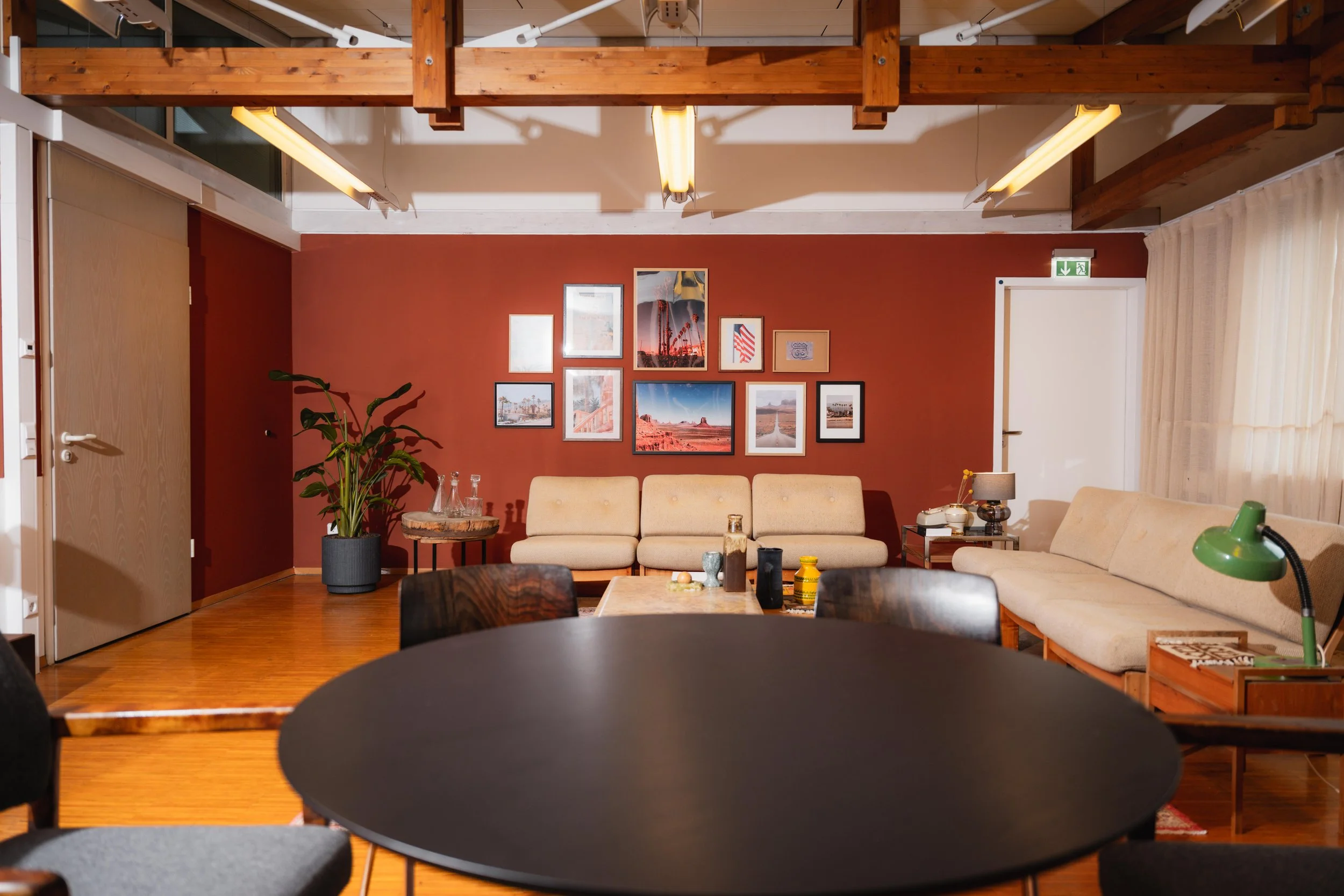 Unsere Business Lounge im eleganten 60er-Jahre meets California-Style ist der perfekte Ort für Meetings, vertrauliche Gespräche oder kreative Brainstormings in kleiner Runde. In gemütlicher Atmosphäre mit einem traumhaften Blick ins Grüne und über die Dächer von Nagold entsteht ein Raum, in dem man sich sofort wohlfühlt – und der Austausch ganz natürlich fließt.
